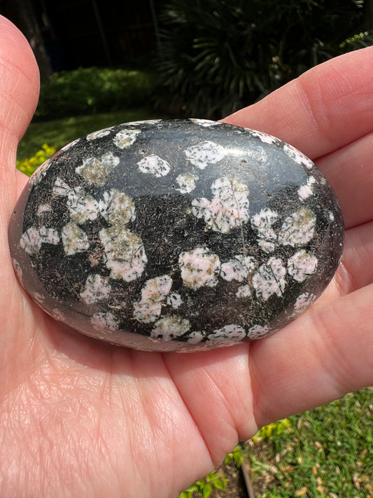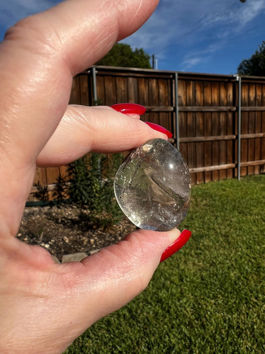 Shamanic Dream Quartz Lens, Lodolite, new, palm stone, high vibration crystal healing, gifts, 1.25”