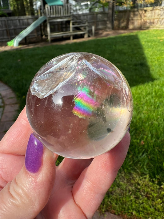 Smoky Lemurian Rainbow Sphere, 6.25” around, New, rainbows, high vibration crystals, Unicorn Rain, gifts