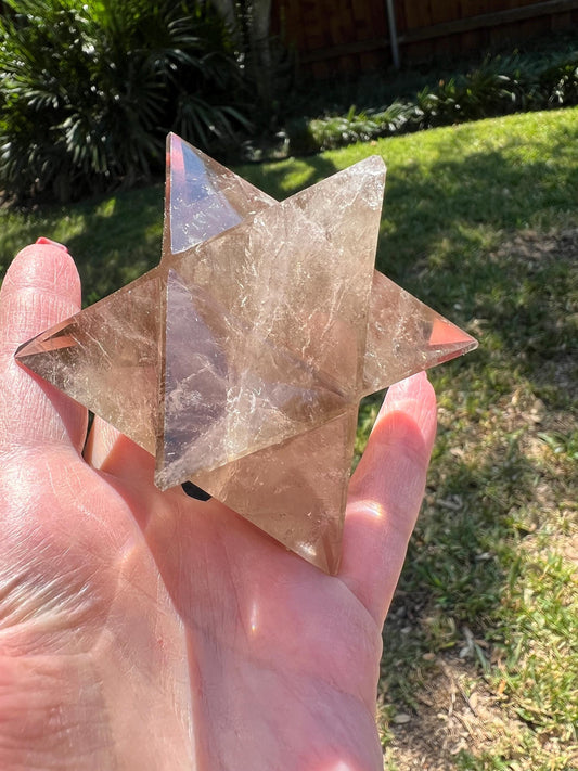 Smoky Quartz Merkaba Star 4”, high vibration crystals, crystal healing, rainbows, gift