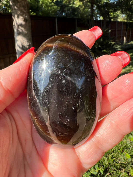 Chocolate Calcite Palm Stone, 2.75”, new, gift, altar, crystal healing practice