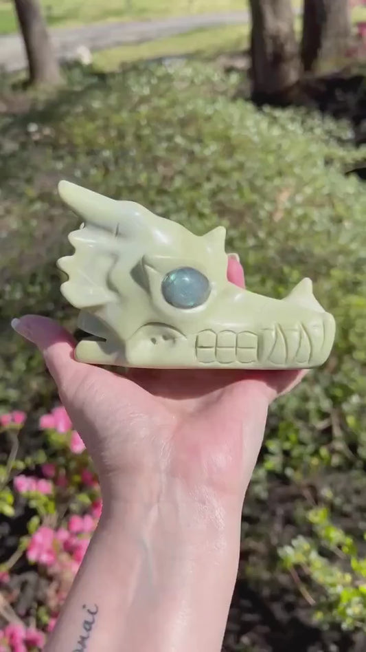 Butter Jade Dragon Head Skull 5”, new, beautiful carving, crystals healing practice, gift, altar