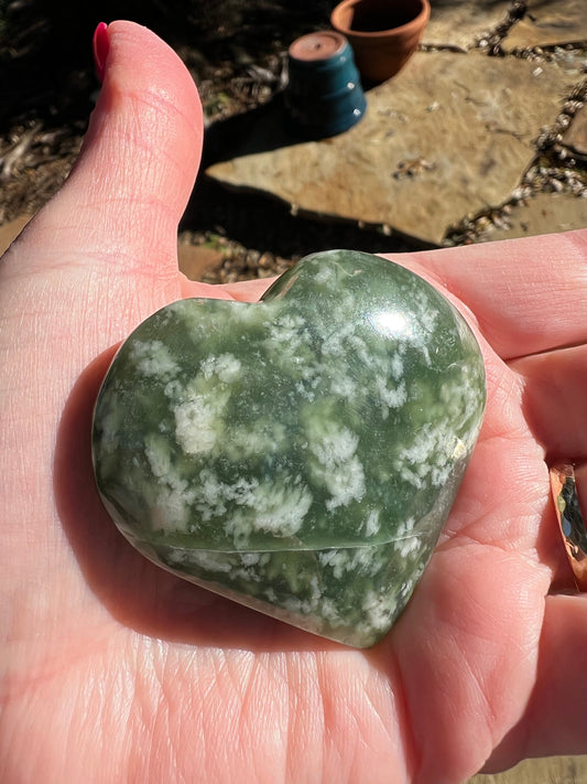 Grape Jade Heart Palm Stone, New, 2.5”, Crystal healing, gift, high vibration crystals
