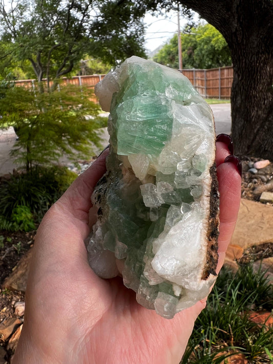 Green Apophyllite Fairy Bed with sparkle, celadonite, new, 2.7”, high vibration crystals, gifts, altar