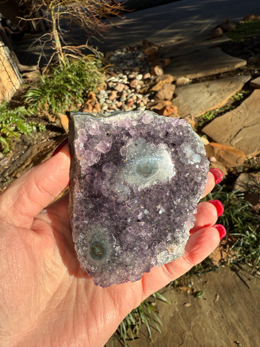 Galaxy Stalactite Double Eyes Amethyst Bed, 4”, altar, gift, crystals, high vibration crystals