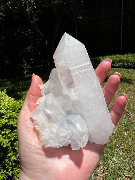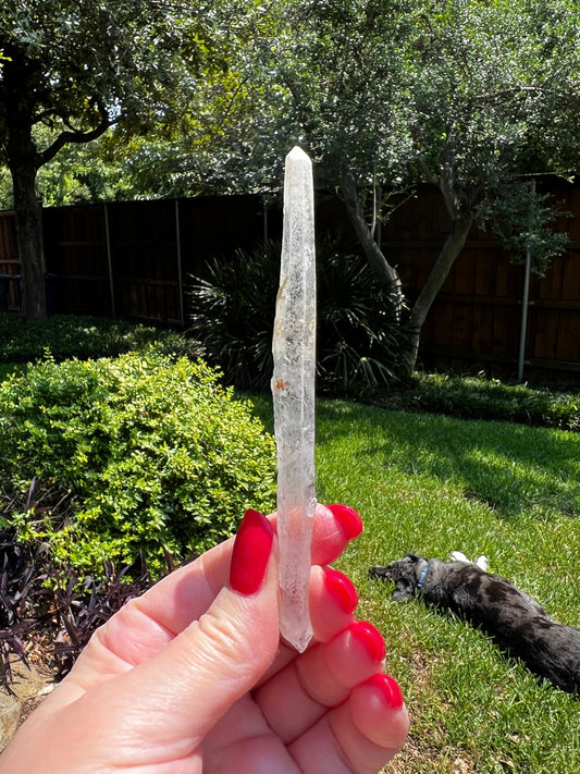 Laser Singing Lemurian 6.5”, with crown bottom, New, 126 grams, gift, altar, high vibration crystals