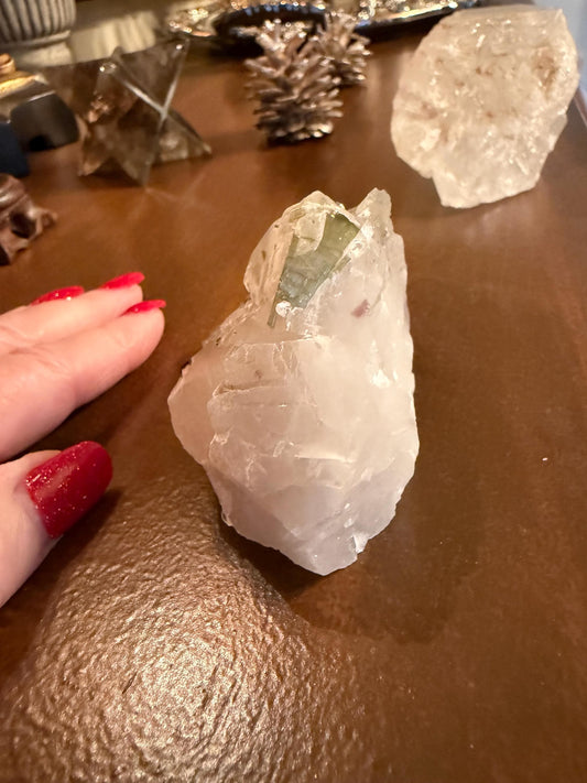 Large Green Tourmaline in Quartz with inner rod, stunning raw altar piece 7 oz, high vibration crystals, 3”