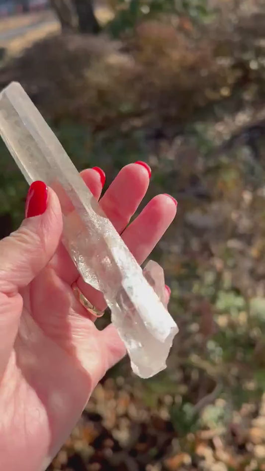 Laser Singing Lemurian Wand 4.5” raw bottom, New, gift, altar, high vibration crystals