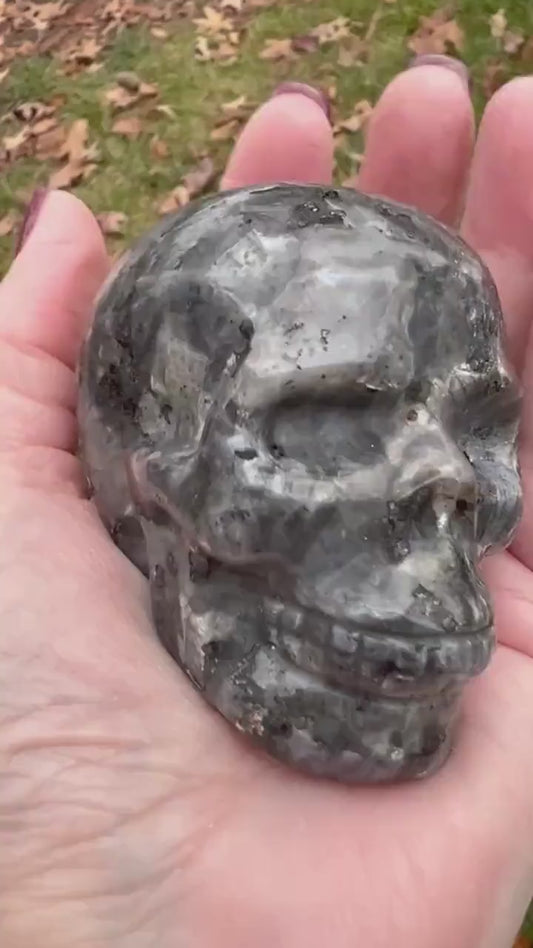 Larvakite Skull 3” w/ labradorescence, New, Large, Gift, High Frequency Crystals, Crystal Healing