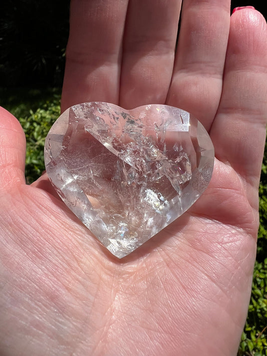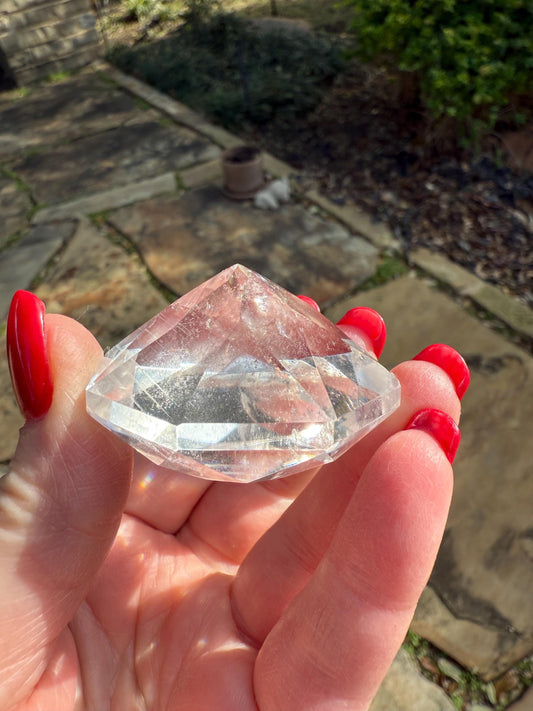 Lemurian Diamond, new, Polished cut carving, palm stone, rainbows, fine Lemurian healing magick crystal, 2”