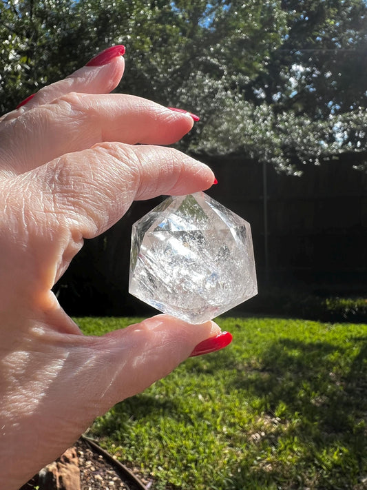 Lemurian Icosahedron triangle faces, Polished cut carving, 2”, fine healing magick crystal, high vibration crystals