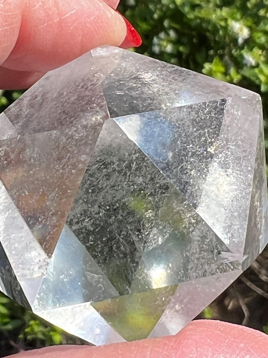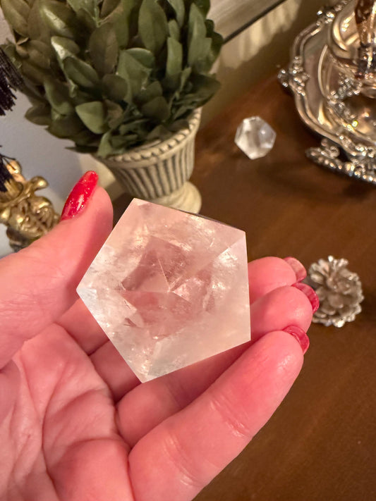 Lemurian Dodecahedron Triangles, Polished cut carving, 2”, rainbows, fine Lemurian healing magick crystal, high vibration crystals