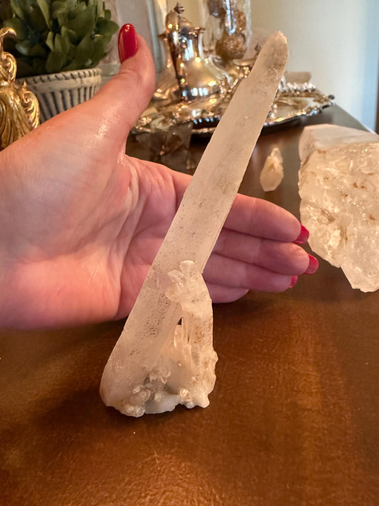 Laser Sugared Lemurian Wand 6”, crown bottom, New, gift, altar, high vibration crystals