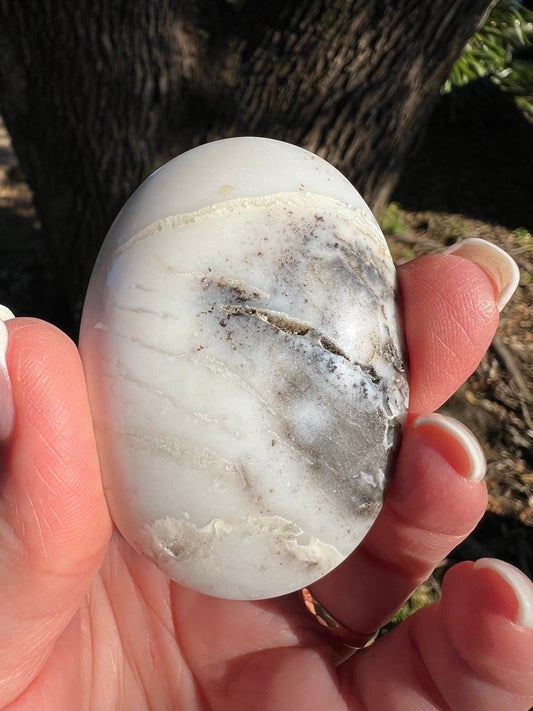 Merlinite Dendritic Druzy Agate Polished palm, 2.4”, meditation, gifts
