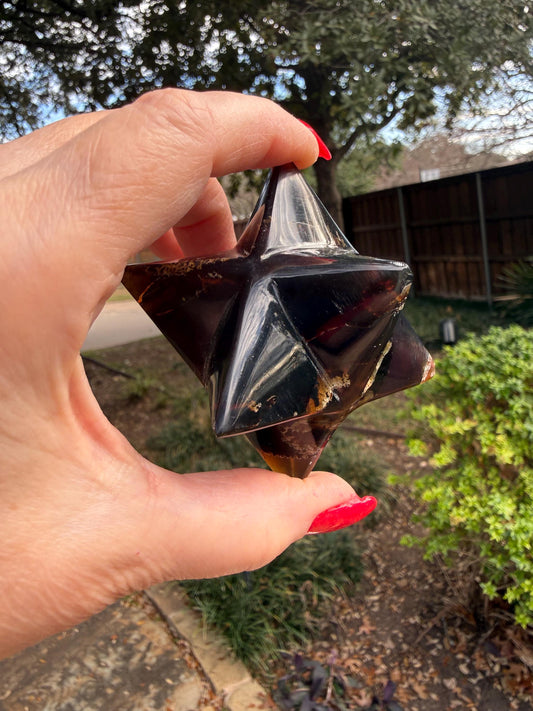 Rare Brown Amber Merkaba, Glorious Beautiful Amazing Color, altar, gift, new, 3.25”, healing crystals