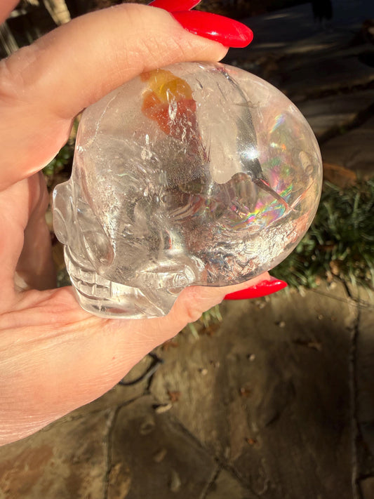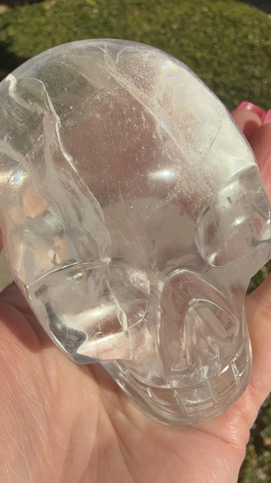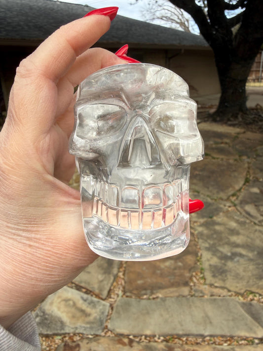 4” Lemurian Quartz stunning skull carving, high vibration crystals, altar, King Arthur