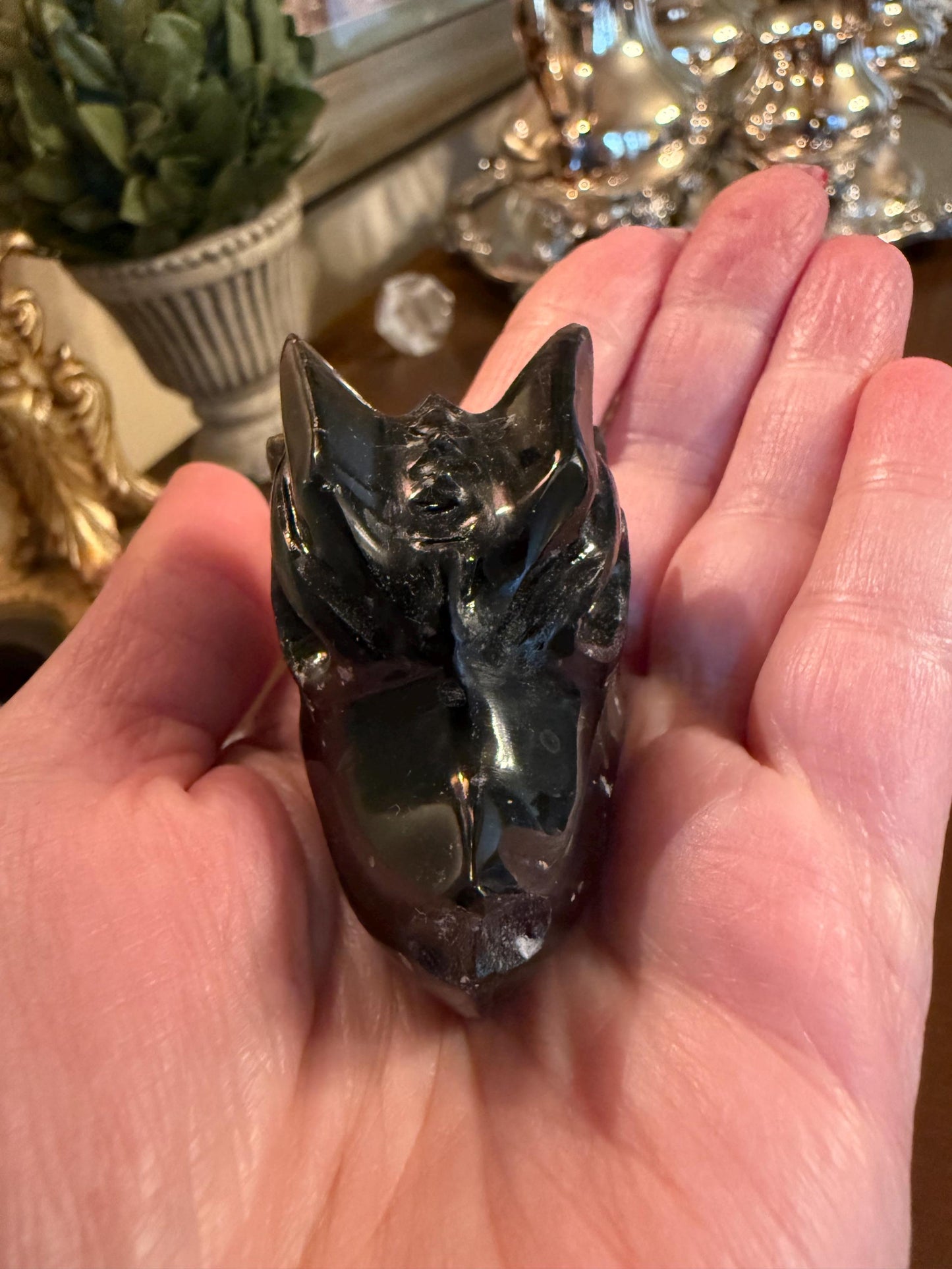 Agni Manitite Dragon Skull 2”, perfectly carved. She is beautiful, with a twinkling of “stars” on her face.