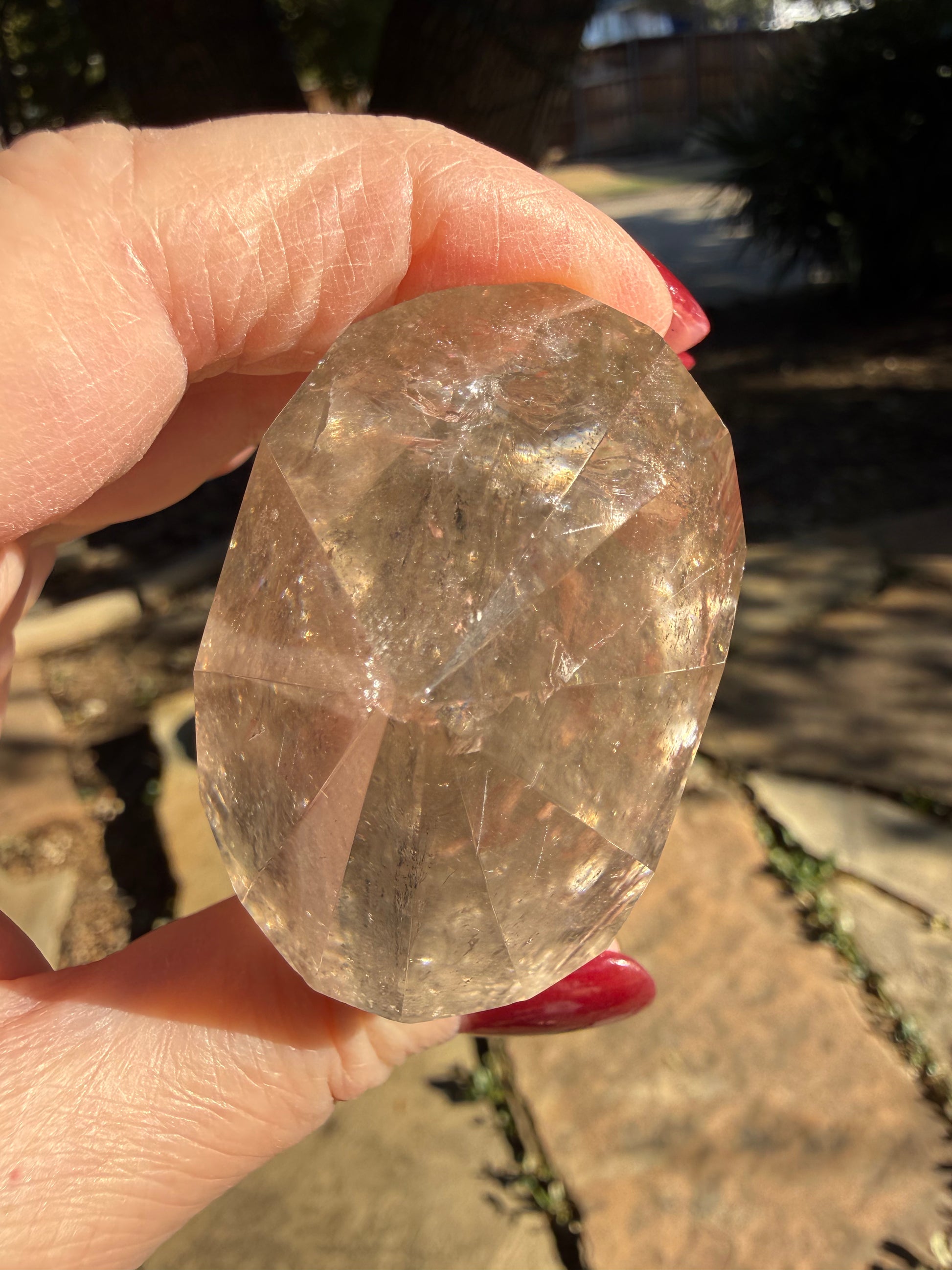 Lemurian Quartz DT with stunning flash from Brazil, pure and powerful. And such a gorgeous silvery inclusion! This is what I love most in this gorgeous pocket wand. The carver caught all the beauty and it is polished to perfection. Triple AAA quality overlit by Merlin, King Arthur, and the diamond ray. This is healing magick, manifestation magick, unicorn magick - and a fierce wand for protection against the Dark Triad personalities and other wounded narcissistic types, returning their energy to sender with consciousness attached. Powerful stuff!