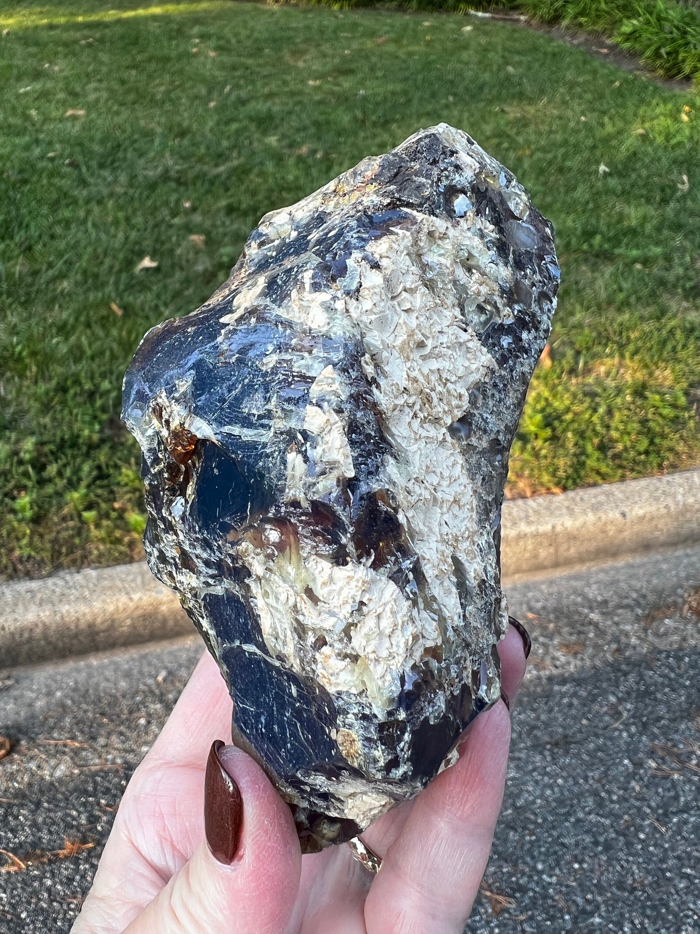Large raw amber chunk, authentic and gorgeous from my supplier in Indonesia. He always shows me the pieces first which have been collected because he knows how much I love amber. I gasped when I saw this piece and nearly cried with joy! I’ve never seen such a large piece of amber, no wonder this group was so expensive. I’ll probably never see one this large again. This is a brown amber, natural and untreated. Sustainably harvested. I am very lucky that I was able to get such a wonderful piece. Sometimes she catches the light and sparkles, speaking me to me of the connection between earth and Great Spirit. I just love raw amber. A statement piece to keep you grounded and focused on healing, both yours and the planetary beings. Half a pound exactly and stunning.